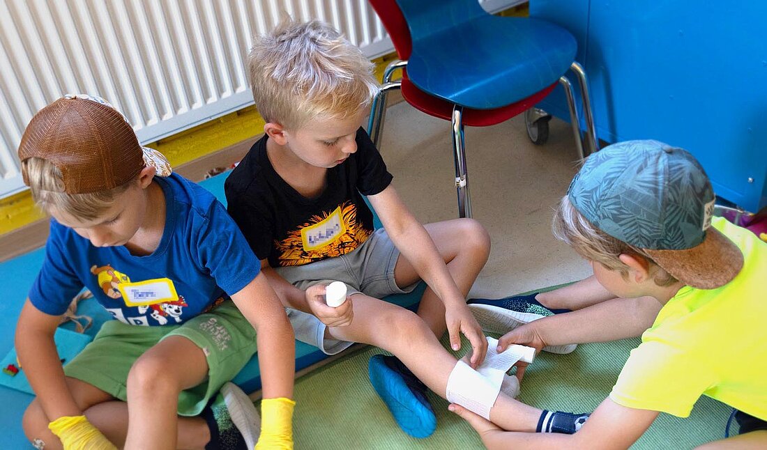 Besonders viel sind wir im Rahmen unserer Projekte in Kitas und Grundschulen aktiv. Dort zeigen wir spielerisch, wie Erste Hilfe funktioniert und dass jeder helfen kann!